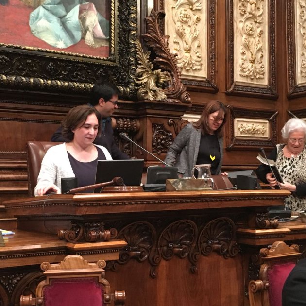 Ambient enrarit al ple municipal de Barcelona. L'anunci de la marxa de Marta Rovira a l'exili ha agafat els regidors enmig de la sessió plenària. L'alcaldessa de la ciutat, Ada Colau, ha interromput breument la intervenció de la Síndica de Barcelona, que avui presenta al plenari l'informe anual, per donar una mostra de suport als regidors d'Esquerra Republicana. Colau, amb llàgrimes als ulls i visiblement emocionada, ha parlat de la situació "excepcional" de les últimes setmanes i, especialment, de la notícia que s'acabava de saber: l'exili de la diputada d'ERC. "Marta Rovira ha marxat a l'exili i crec que ho havia de mencionar", ha dit.