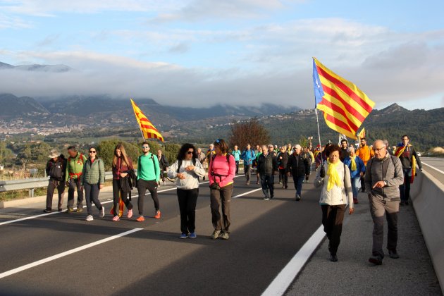 A Tàrrega, els manifestants tallen tres carrils de l'A-2, els que van en sentit Barcelona. Aquesta marxa és la més matinera, ja que han quedat a les 7 a la plaça del Carme. Hi ha gent de totes les edats amb motxilles i estelades.