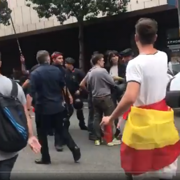 Un equip de TV3 ha hagut de ser escortat pels Mossos d'Esquadra durant la manifestació convocada per l’associació Espanya i Catalans al centre de Barcelona.