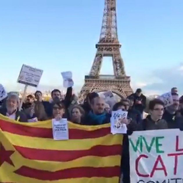 L'Assemblea Nacional Catalana de França ha organitzat una concentració aquest diumenge al Trocadéro de París, davant la Torre Eiffel, per demanar la llibertat del Govern empresonat i dels líders sobiranistes Sànchez i Cuixart.