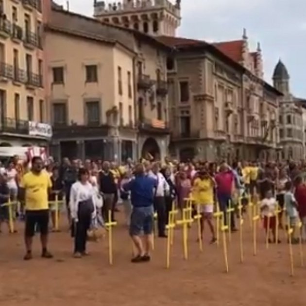Desenes de persones s'han concentrat aquest diumenge a la tarda per protestar per l'atac d'aquest diumenge al matí a Vic, on un cotxe ha envestit part de les creus grogues plantades a la plaça Major pels presos i els exiliats. La protesta, convocada pels CDR i per l'ANC, tenia per lema "Construïm, mai destrossem" i ha començat a les sis de la tarda.