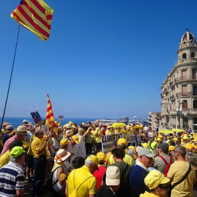 Concentració per la llibertat dels presos polítics i el retorn dels exiliats al balcó del Mediterrani de Tarragona. La major part dels manifestants —uns 300— eren els Avis per la República, que han viatjat fins allà des d'arreu del Camp de Tarragona.