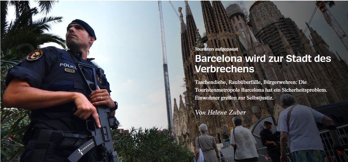 Der Spiegel, el setmanari més important d'Alemanya, ha publicat un contundent reportatge advertint de la crisi de seguretat de Barcelona. "Barcelona es converteix en una ciutat dels delictes", titula la publicació, que destaca també l'aparició de vigilants veïnals davant els creixents problemes de delinqüència.