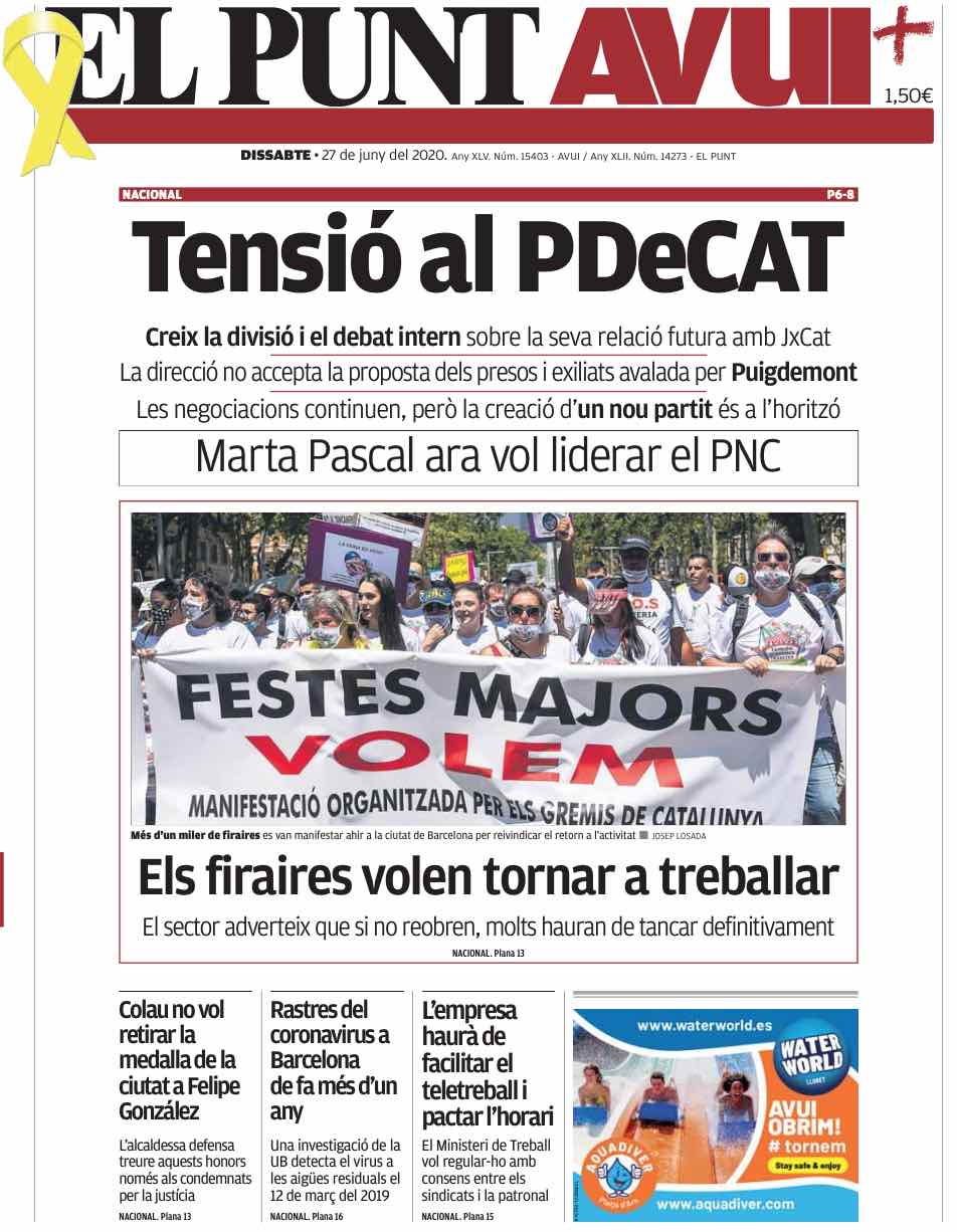 Té gràcia la portada d’El Periódico d’avui perquè el titular principal i el que hi ha per sota es complementen perfectament: la frase de Patxi López (“Ja ens hem barallat prou, ara toca pactar”) cau com un guant a la mà en el món de baralles que s’aplega a Junts per Catalunya. Ahir deia una cosa semblant el titular principal de l’ABC, que la nova normalitat és pactar.