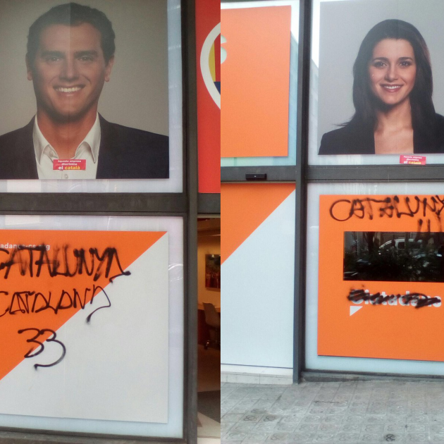 Cs i PSC han denunciat "atacs" amb pintades a seus dels dos partits, que haurien tingut lloc aquesta nit. En el cas del grup taronja el local afectat és la seu central de Barcelona, que ja ha rebut deu atacs en els últims sis mesos, segons ha denunciat el portaveu del grup, Carlos Carrizosa, des dels faristols del Parlament, aquest divendres al migdia. Les pintades diuen "Catalunya lliure" i "Catalunya catalana".