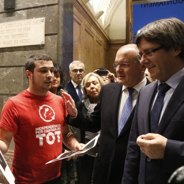 Regidors de la CUP de Reus han rebut el president de la Generalitat, Carles Puigdemont, durant una visita institucional a l'Ajuntament de la capital del Baix Camp amb fotografies del rei Felip VI i del conseller d'Interior, Jordi Jané. Durant la salutació oficial que ha fet Puigdemont, el portaveu de la CUP a Reus, Edgar Fernàndez, ha dit al president que ells no estan per dinamitar l'acord entre JxSí i la CUP però que els sap greu que des de JxSí no s'intentin evitar determinades accions.