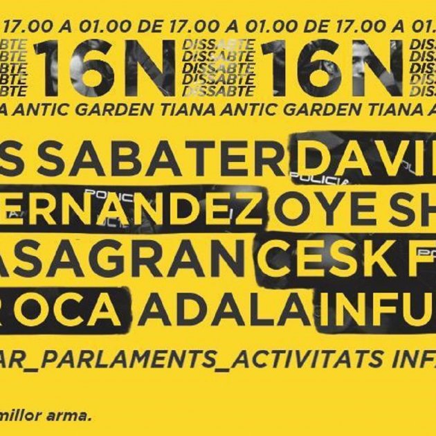 El poble del Maresme acull un cartell combatiu: David Fernàndez i David Caño; els monòlegs d’Oye Sherman; concert d’en Cesk Freixas i Roc Casagan; i Senyor Oca i Adala. L'acte el presentarà Dolors Sabater, exalcaldessa de Badalona. I hi participaran també grups de suport dels detinguts sota el lema "La solidaritat, la nostra millor arma".