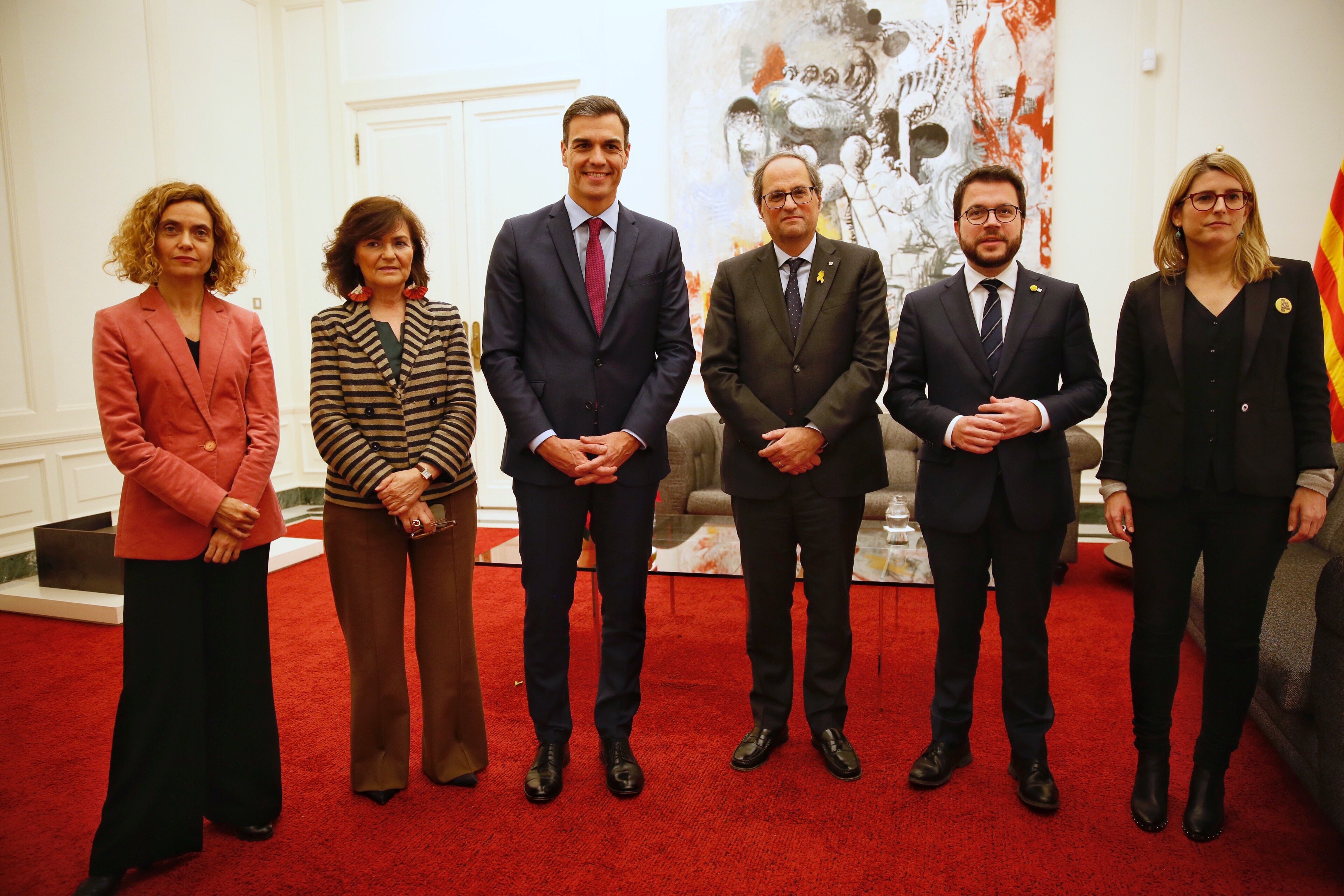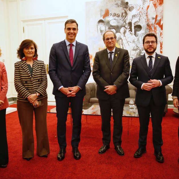 El 20 de desembre de l'any passat els governs català i espanyol es van reunir al Palau de Pedralbes, coincidint amb una visita del president Pedro Sánchez i els seus ministres a la capital catalana per participar en un sopar de Foment del Treball i celebrar-hi un Consell de Ministres. Sánchez i el president Quim Torra es van reunir per una banda i el vicepresident Pere Aragonès i l'aleshores consellera Elsa Artadi es van trobar en paral·lel amb la vicepresidenta Carmen Calvo i l'aleshores també ministra Meritxell Batet.