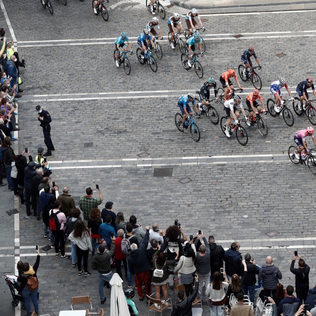 El pas de la Vuelta ciclista per Pamplona avui dimecres, que ha obligat a ajornar el confinament fins a demà, segons Taz EFE
