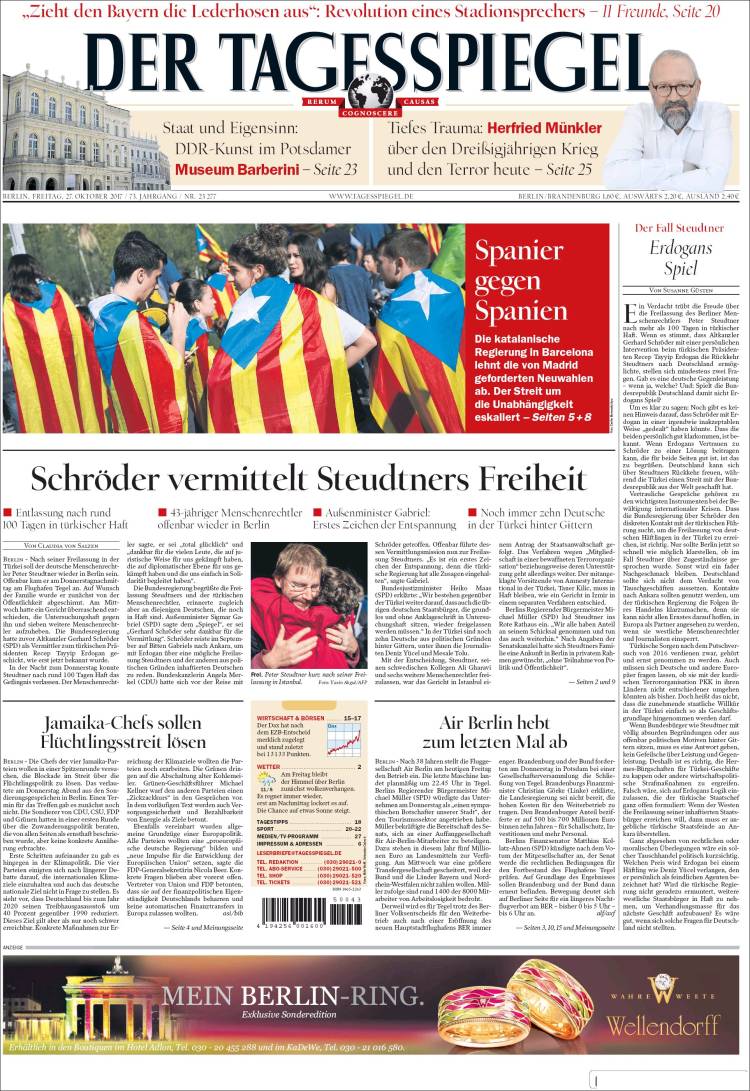 Der Tagesspiegel obre amb una imatge de joves independentistes rere el títol “espanyols contra Espanya”: