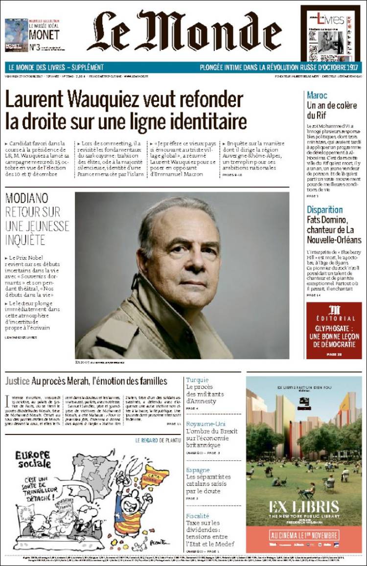 Per a Le Monde, els “separatistes catalans estan atrapats pels dubtes”. Més en gran mostra una vinyeta d’humor titulada “l’Europa Social”, on dirigents europeus critiquen que l’independentisme és “una espècie de treballador independent” que vol retallar Catalunya de la resta d’Espanya: