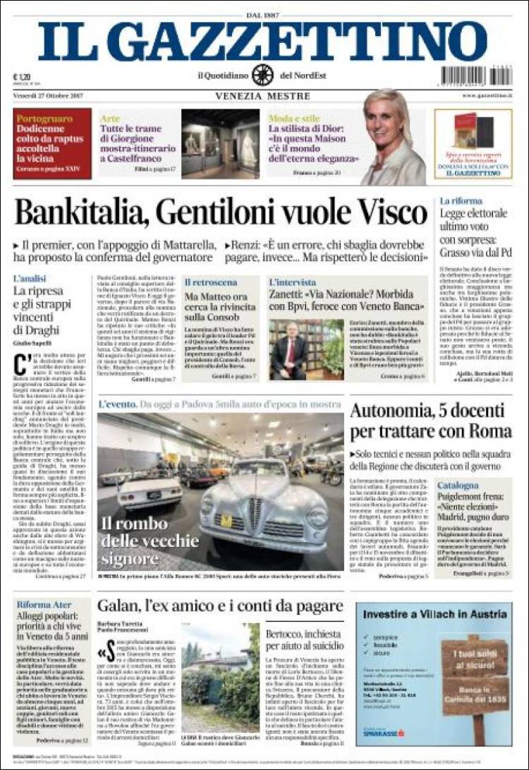 Il Gazzettino explica que Puigdemont diu que “res d’eleccions” i que Madrid exposarà “puny dur” sobre Catalunya: