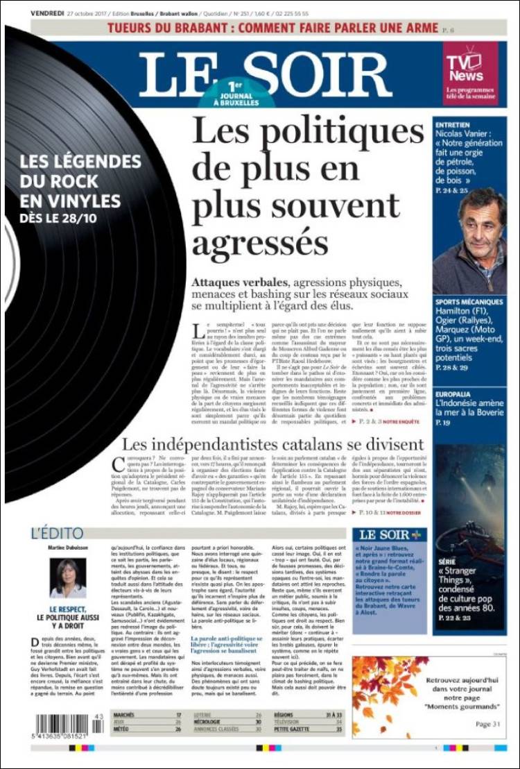 “Els independentistes catalans es divideixen”, és la reflexió de portada de Le Soir: