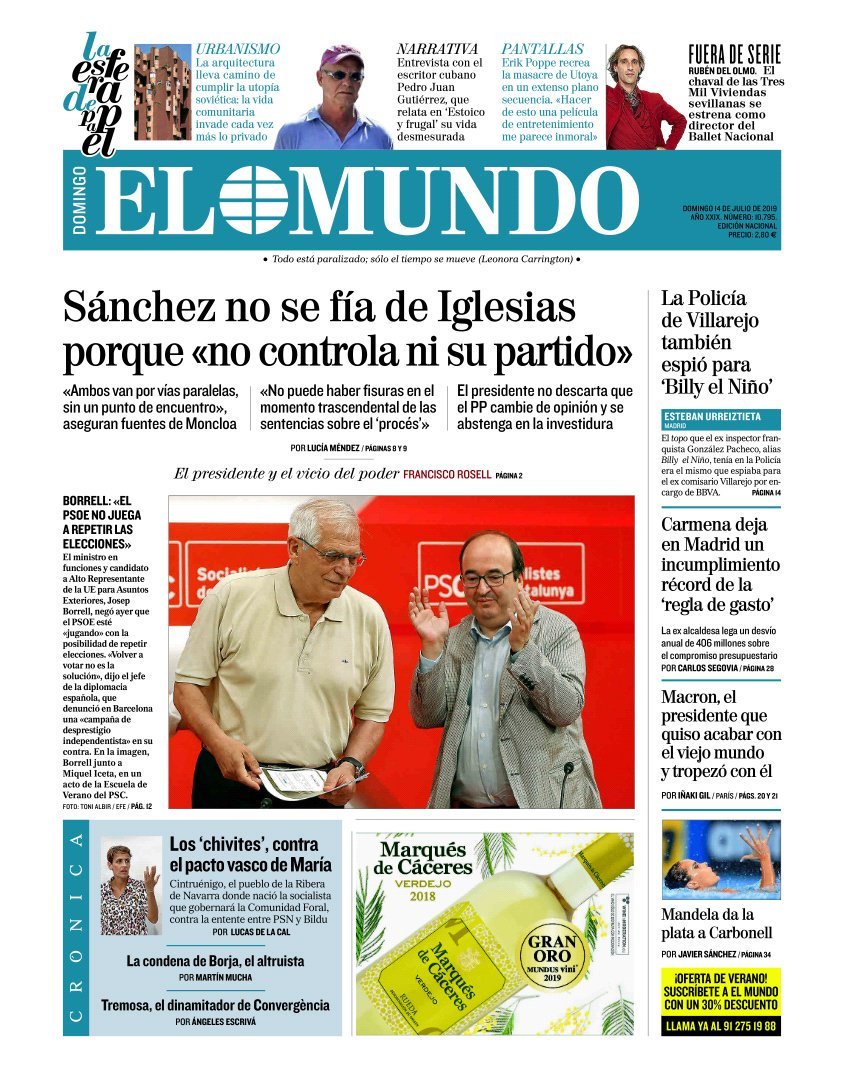 La premsa madrilenya aporta avui una mica més de confusió a l’escenari polític. El País explica que tots els sectors de PSOE s’apleguen contra la possibilitat de governar en coalició amb Podemos —que els de Pablo Iglesias tinguin ministres i tota la pesca, vaja. En canvi, La Razón presenta un PSOE dividit per la perspectiva d’una repetició electoral. Certament, poden ser postures complementàries.