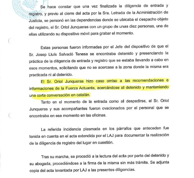 La Guàrdia Civil va recollir el que considera una "incidència" a l'acta de l'escorcoll, que no va poder començar fins que el vicepresident va sortir de l'edifici.