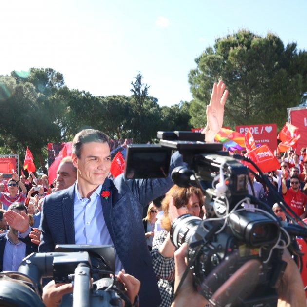 Sánchez ha tornat a apuntar que aspira a un govern del PSOE amb “independents de reconegut prestigi” i ha demanat a aquells que estan entre votar al PSOE o quedar-se a casa, i també aquells que dubten entre els socialistes, Cs o Podem, que el PSOE és l’única formació que pot plantar cara a la dreta. “Tots hem de votar el PSOE perquè els que volen retrocedir ho tenen decidit i demano que els que volem cohesió ens unim a l’entorn del PSOE”.