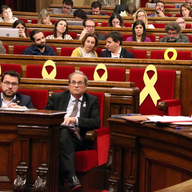 Han llegit aquest text els diputats Francesc Dalmases, Albert Batet i Lluís Font, però també la consellera de Presidència, Elsa Artadi, abans de respondre les preguntes de l'oposició.