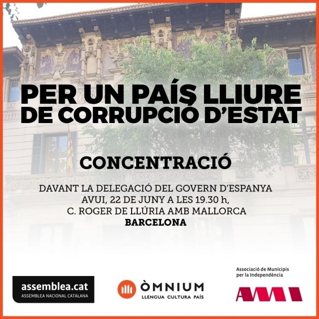 Sota el lema "Per un nou país lliure de corrupció d'Estat", la manifestació vol donar sortida a la indignació que generen les recents informacions aparegudes que relacionen el Govern d’Espanya amb un cas de conspiració política a Catalunya. Des de les entitats sobiranistes defensen la construcció d’una República catalana lliure, justa i democràtica, on no poden tenir cabuda actuacions que atemptin contra les llibertats més bàsiques de les persones.