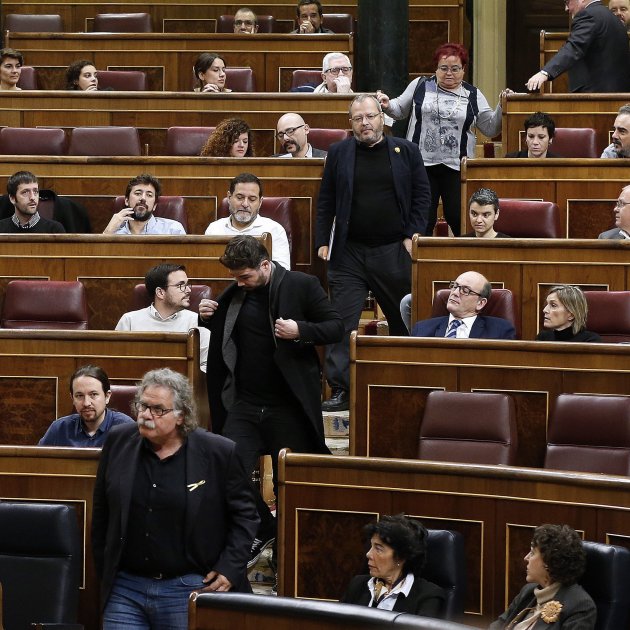El ministre d’Exteriors havia assegurat que en el moment de sortir de l'hemicicle, un diputat d’ERC, que no ha concretat, li ha escopit. En les imatges del moment, es pot veure com els diputats passen per davant de Borrell i el ministre n'assenyala un, Joan Capdevila, però en cap cas s’aprecia que aquest li hagi escopit.