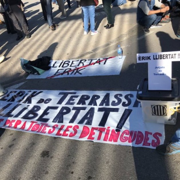 L'Erik, de 21 anys, va ser detingut a casa seva per la Policia Nacional. La seva detenció ha generat diverses protestes, a Terrassa i davant la comissaria de policia de la Verneda. Les organitzacions de defensa dels presos critiquen que se li dificultés l'accés al seu advocat.