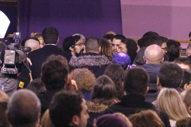 En impedir-li el pas i demanar-li que s'apartés, ell s'ha resistit i ha estat forçat a abandonar l'espai, entre els xiulits de part dels assistents i crits d'"unitat". I és que, tot i que no s'ha pogut llegir el contingut del cartell, tothom ha interpretat que era una consigna crítica amb Errejón i partidària de Pablo Iglesias.