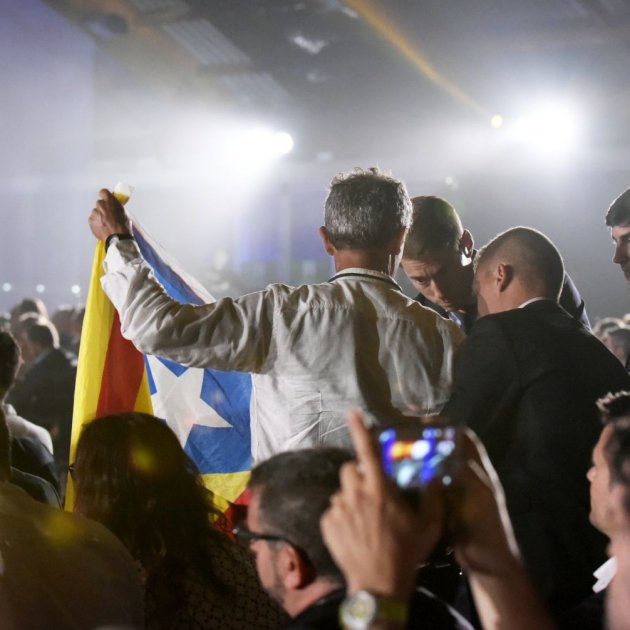 Ha estat el president de la federació catalana de Korfbal i membre de la Plataforma Proseleccions catalanes, Francesc Serra, que s'ha aixecat del seien que ocupava entre el públic per exhibir una estelada que duia amagada. Els serveis de seguretat han retirat ràpidament la bandera. Però Serra hi ha insistit. Després de fer el gest de seure, s'ha tornat a aixecar aquest cop amb un cartell on reclamava "Volem votar", que ha ensenyat en diferents direccions.