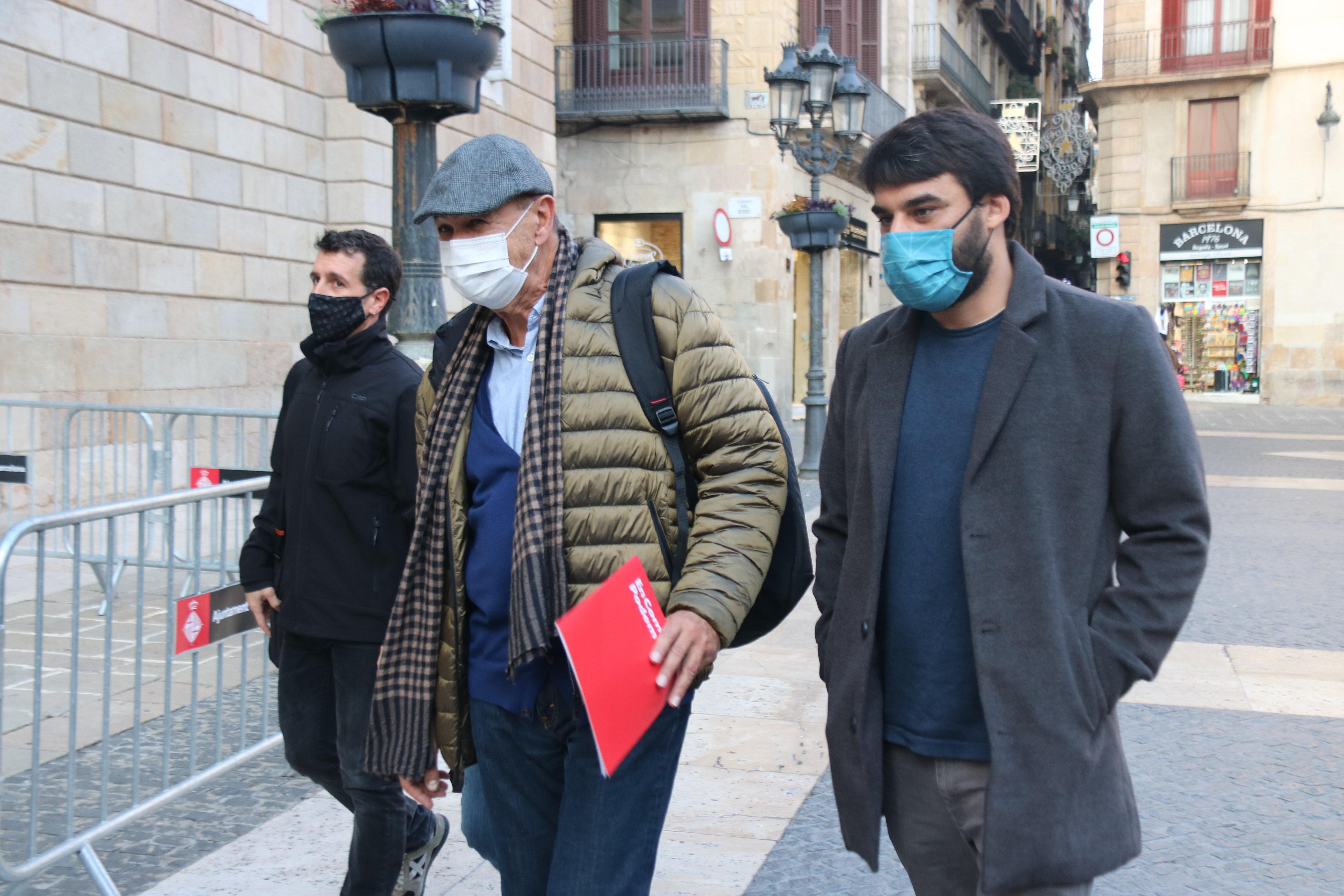 Els representants dels comuns Joan Carles Gallego, Marc Ferro i Marc Parés arriben a la reunió amb el Govern / ACN