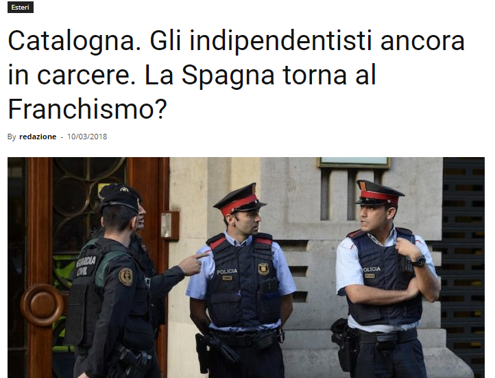 El diari Faro di Roma ha recordat que els presos polítics catalans encara estan a la presó, i s'ha preguntat si Espanya torna cap al franquisme