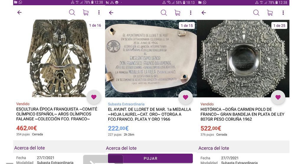 Segons publica InfoLibre, els obsequis que van ser atorgats a Franco per entitats públiques, se n’han pujat a l'internet per tractar de buscar-los nou propietari. Aquestes escultures i plaques franquistes, per tant, ja no formaran mai més part del patrimoni de l'Estat espanyol.