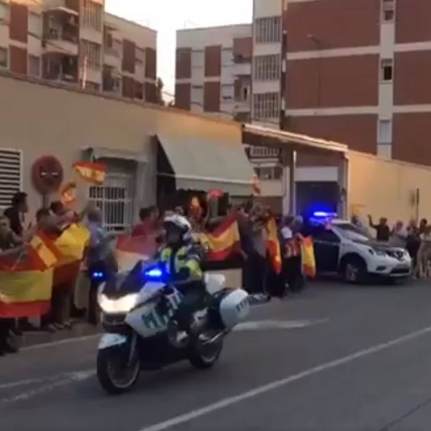Despedida a las unidades de la Guardia Civil que salen de la Comandancia de Huelva hacia Barcelona. Espectacular. pic.twitter.com/9MvFSEfrYv