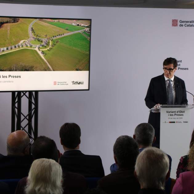El president de la Generalitat, Salvador Illa, ha presentat aquest dissabte el que ha considerat un dels projectes més importants d’aquesta legislatura. Es tracta del projecte de la variant d’Olot i les Preses (Girona), que preveu connectar les carreteres A-26 i C-37, i que suposa una inversió de 470 milions d’euros, amb una previsió que les obres es licitin aquest 2026, comencin el 2027 i s'allarguin uns 55 mesos, de manera que la infraestructura no entraria en funcionament fins a mínim el 2031. Aquesta obra ha generat mobilitzacions de rebuts en els últims mesos entre agricultors i organitzacions de veïns de la Vall d'en Bas pel seu potencial impacte ambiental i en zones agrícoles. En el seu parlament, Illa, en esment implícit a aquesta situació, ha defensat que "governar és decidir" i que "el país no pot quedar parat". "S'ha d'escoltar tothom, però també s'han de prendre decisions", ha afirmat el president, que ha posat com a exemple el projecte per ampliar l'Aeroport Josep-Tarradellas Barcelona El Prat, rebutjat pels seus dos socis d'investidura, ERC i Comuns.