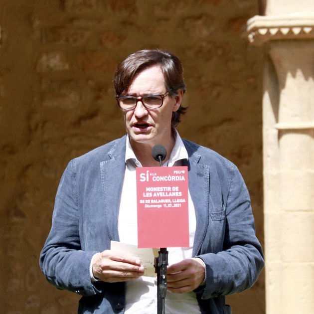 Imatge principal: Salvador Illa, en una atenció als mitjans de comunicació al Monestir de Les Avellanes. ACN.