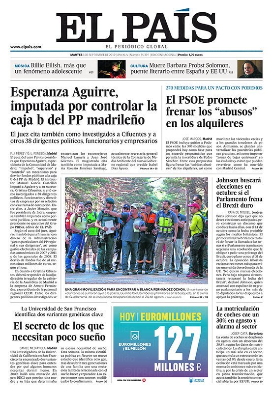 El cas és que el magistrat de l’Audiència Nacional Manuel García Castellón vol saber quin paper jugaven Aguirre i Cifuentes, expresidentes de la comunitat de Madrid, en la trama corrupta de finançament irregular del PP madrileny entre el 2003 (l’any del tamayazo) i el 2011. Eren els anys en què Aguirre era la reina del mambo, una majoria absoluta darrere l’altra. El jutge també ha declarat investigats (abans se’n deia imputats) a 41 alts funcionaris, caps polítics i directius d'empreses, entre els quals l'expresident d'Indra, Javier Monzón, actual president no executiu de l’editora d’El País. Indra fa moltes coses, però és coneguda per la gestió informàtica del recompte de vots en nombroses eleccions a Espanya i més enllà.