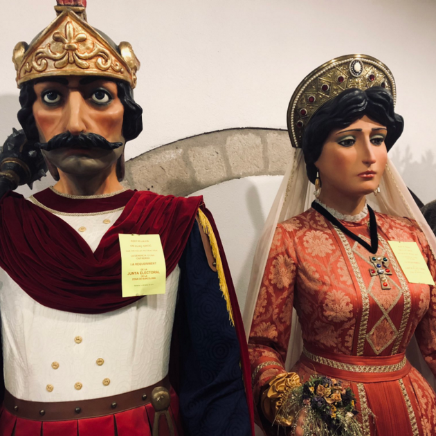 La Junta Electoral ha ordenat la supressió dels llaços grocs que portaven els gegants nous de Sant Roc, de la plaça Nova de Barcelona.