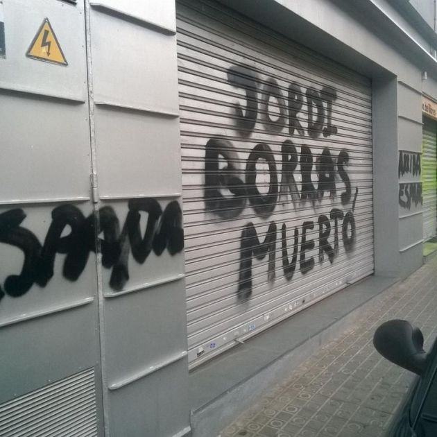 La Llibreria Buc de Llibres de Mataró s'ha despertat amb la pintada "Jordi Borràs, muerto". Aquest atac ha estat fet la nit abans que el fotoperiodista hi celebrés una xerrada sota el títol "Què s'amaga darrere el concepte Hispanitat?", organitzat per la CUP de Mataró.