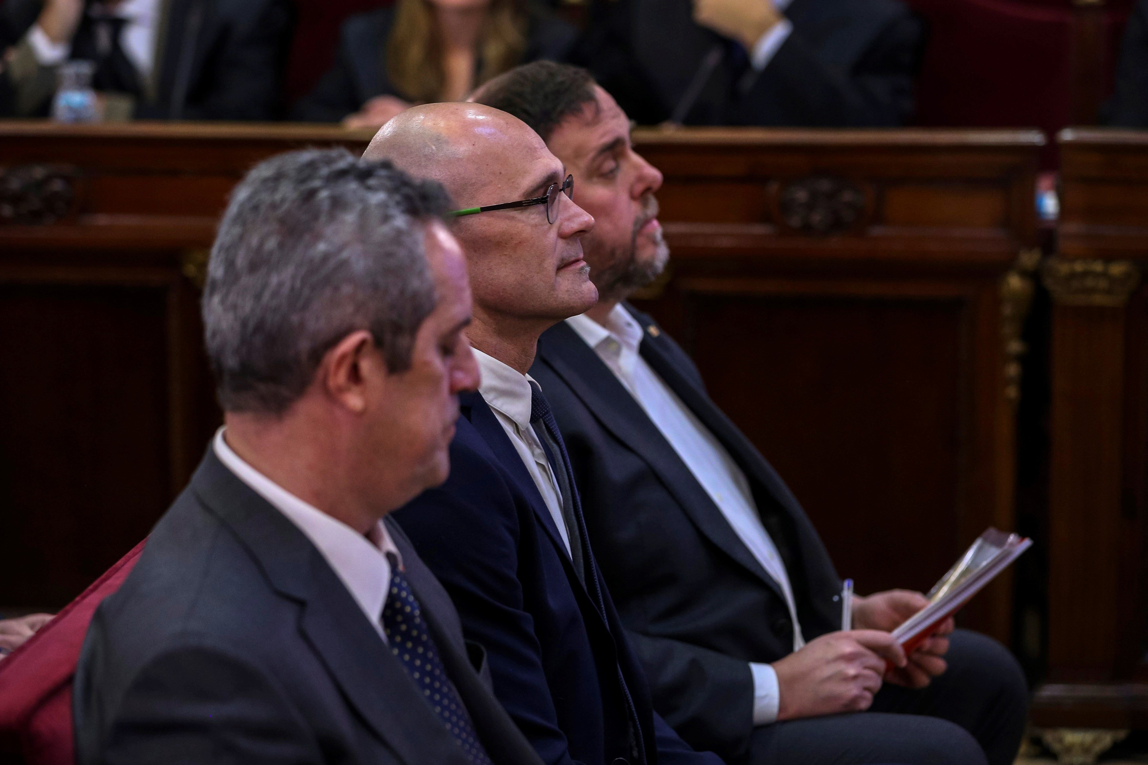 Quatre bancs amb tres processats a cada un. Així és com s'han assegut els líders polítics catalans a la sala del Suprem on ja està en marxa el judici al procés; el lloc que han ocupat depèn de l'ordre en què probablement declararan.