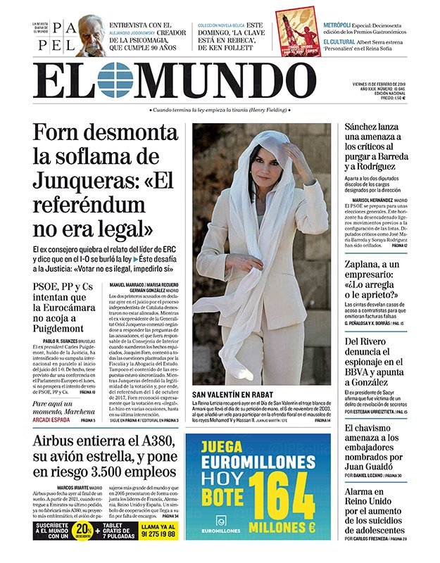 Poca cosa. Si hi penses dos o tres segons, és obvi que Junqueras sabia que el referèndum havia estat declarat il·legal. Altra cosa seria prendre’l per badoc. El Mundo, ABC i La Razón, però, s’aprofiten que no és massa gent fora de Catalunya que segueix la retransmissió de la vista, de manera que és la premsa impresa la que s’encarrega de fixar el relat. En són ben conscients i bé que se n’aprofiten per presentar una imatge distorsionada al seu gust (i probablement al dels seus lectors), com les dels miralls del Callejón del Gato, els de Luces de Bohemia de Valle Inclán, que Gómez de la Serna descrivia així: “Encaixats a la paret i de la mida d’un vianant d'estatura regular, [els] dos miralls, un còncau i l’altre convex, deformaven en Quixot i Sancho tothom que s’hi mirava”.