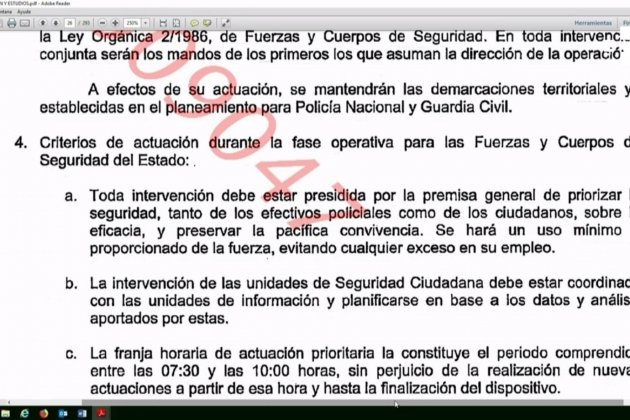 També ha admès que tot i que van venir per fer tasques d'auxili, l'1-O canvia "perquè hi ha una instrucció del secretari d'Estat, de 29 de setembre, en la que diu que es desplacen les unitats en suport als Mossos i en el supòsit que siguin insuficient podran actuar amb independència". I Zoido explica que va canviar la instrucció i que el secretari d'estat dicta el canvi quan la magistrada del TSJC dicta una interlocutòria on posa al mateix pla tots els cossos de seguretat.