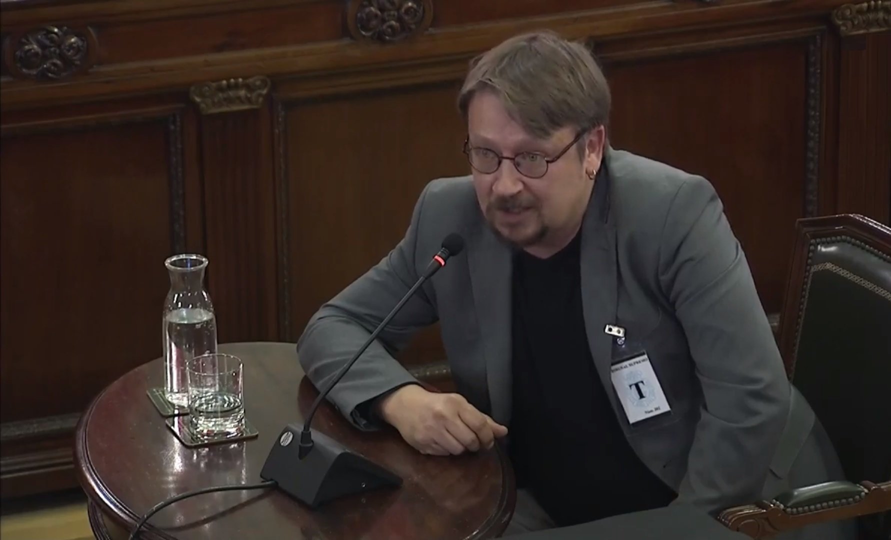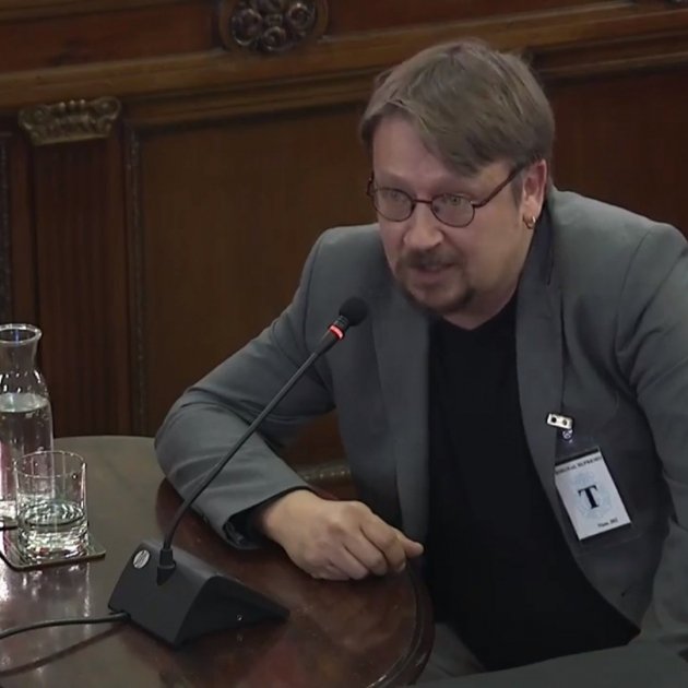 L'exdirigent dels comuns ha arrencat la seva intervenció constatant que al banc dels acusats coneix “la majoria dels injustament acusats”. Ha deixat clar que respondria totes les parts, però que “és un símptoma de fracàs democràtic quan l’acusació particular està formada per un partit incapaç de condemnar el franquisme”. Només li han formulat preguntes Vox, que havien demanat el seu testimoni, i l'advocada de Carme Forcadell, Olga Arderiu.
