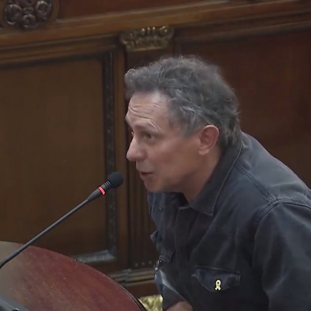 Agustí Ferrer ha entrat fort a la sala de vistes del Tribunal Suprem. En el moment inicial, quan Manuel Marchena diu els drets i obligacions dels testimonis, ha etzibat un: "Espero que la veritat els faci lliures".