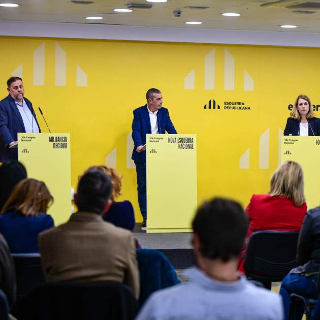 El debat entre els candidats a la presidència d'ERC, quatre dies abans que la militància voti en el congrés d'aquest dissabte 30, ha estat el primer cop que s'han vist les cares Oriol Junqueras (Militància Decidim), Xavier Godàs (Nova Esquerra Nacional) i Helena Solà (Foc Nou). Després d'un primer debat entre els candidats a les secretaries generals amb les espases en alt i que va girar al voltant de la figura de Junqueras, aquest dimarts els presidenciables han rebaixat el to i fins i tot el moderador, l'actual vicesecretari de comunicació, Oriol Duran, els ha demanat que debatessin més entre ells. Durant el debat s'han confirmat les coincidències entre les candidatures (totes tres han parlat de tornar a fer gran el partit, recuperar l'orgull de ser d'ERC i reconnectar amb la societat) però també les diferències. Aquestes s'han fet palpables en elements com l'estructura B i l'escàndol dels cartells: Solà ha apostat per "fer net", una auditoria externa i arribar a les vies legals si calgués; Junqueras, en canvi, ha posat sobre la taula la creació d'una "comissió de la veritat", un terme que no agrada gens a Godàs, que ha demanat no crear nou organismes i confiar en el que ja té el partit, com és la comissió de garanties, defensant l'estructura de la formació republicana.