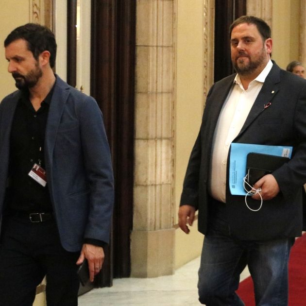 La trobada s'ha produït mentre el ple debat la llei d'arquitectura. De forma discreta i sense avisar els mitjans, Junqueras ha entrat al seu despatx habitual al Parlament, i pocs minuts després ho ha fet el líder dels socialistes catalans.