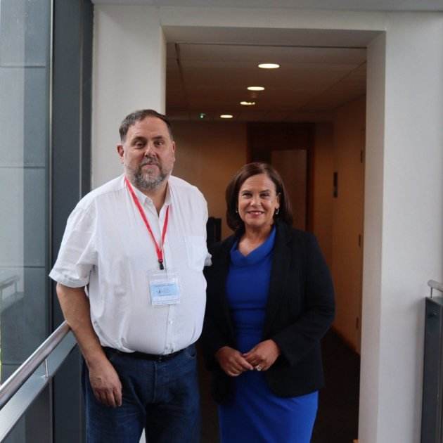 Oriol Junqueras, de visita aquesta setmana a la República d'Irlanda i a Irlanda del Nord per estrènyer llaços amb el Sinn Féin, s'ha reunit aquest dimarts a Dublín per primer cop amb la líder del partit i guanyadora de les últimes eleccions al país, Mary Lou McDonald. En aquesta reunió també hi ha participat el responsable del partit en matèria de política exterior i defensa, Matt Carthy, amb qui es va conèixer al Parlament Europeu i que va visitar el líder d'ERC quan estava empresonat a Lledoners. Des de llavors, mantenen una relació propera i, segons ha pogut saber ElNacional.cat, tots dos tenen la voluntat de treballar junts l'autodeterminació en dos països occidentals, un des de la reunificació d'Irlanda i l'altre per la independència de Catalunya. Des d'ERC fan una valoració molt positiva d'aquesta trobada, que s'emmarca dins aquest viatge de Junqueras en plenes negociacions per la investidura de Pedro Sánchez. El partit defensa que aquestes reunions han de servir per conèixer "elements metodològics i estratègies negociadores" que van permetre arribar a l'Acord del Divendres Sant el 1998 i que va posar punt final a 35 anys de conflictes armats.