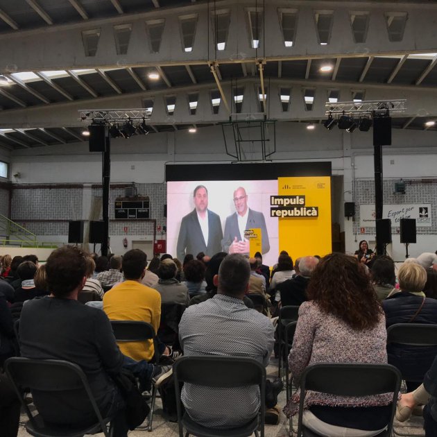 Aquest ha estat el primer acte de Junqueras i Romeva en campanya, malgrat no poder-hi ser en directe per la limitació horaria imposada per la JEC. Tots dos han gravat la seva intervenció en vídeo una hora abans de l’inici del míting, celebrat al poliesportiu municipal de la Bordeta davant més de 150 persones. Fins ara només s’havien pogut emetre alguns petits vídeos. Aquest dissabte, però, Junqueras sí que podrà intervenir en directe per primer cop en aquesta campanya per les municipals i europees, i ho farà en un emplaçament molt especial per ell: Sant Vicenç dels Horts.