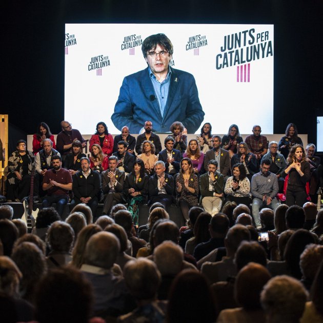 A la imatge principal, Carles Puigdemont durant un acte electoral de JxCat