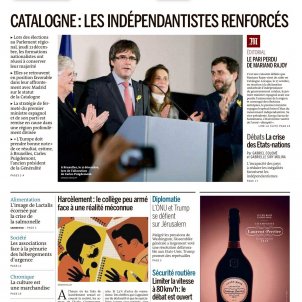 El diari Le Monde d'avui, amb el titular: Catalunya, els independentistes reforçats