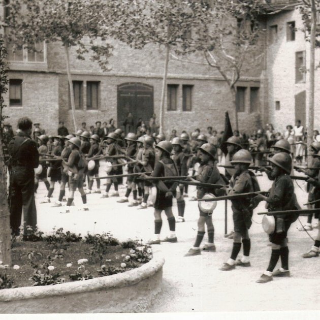 A la foto principal, instrucció militar de nens del Centro Nacional, nom donat a l'Ateneu Igualadí de la Classe Obrera, un cop extingit i requisat, al fos les escoles de l'Ateneu. / Foto: Arxiu Ateneu Igualadín