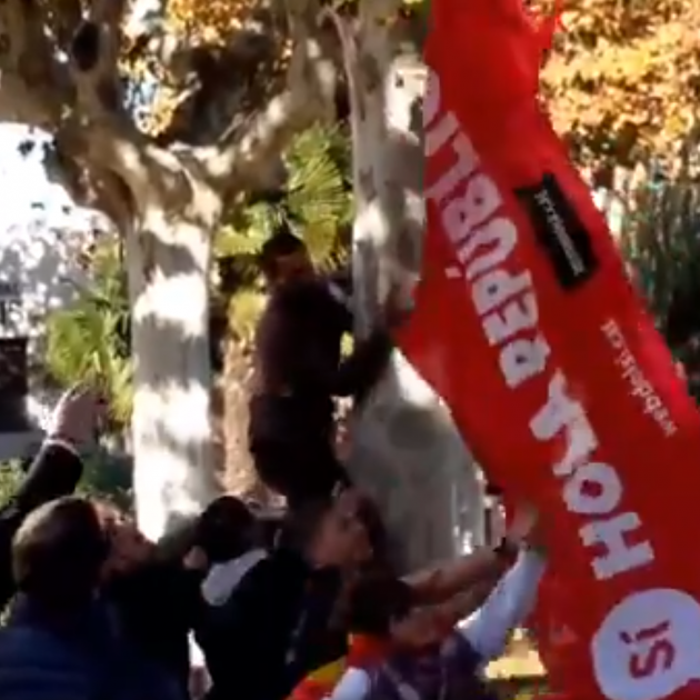L’acció ha acabat amb aplaudiments d’altres concentrats, alguns dels quals amb banderes de formacions d’extre madreta.