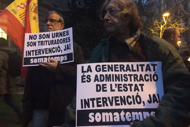 Aquesta manifestació organitzada per grups tant d'extrema dreta com també d'extrema esquerra, entre ells Somatemps, Convivencia Cívica Ciudadana o Unidos Sí, ha tallat el carrer Mallorca a l'altura de Roger de Llúria, pràcticament durant una hora. Durant la reivindicació, han acusat la Generalitat de "colpista", "corrupta" i "sectària" i l'han acusat de voler "liquidar la sobirania d'Espanya".