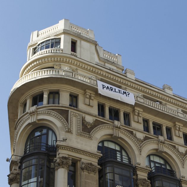 La plataforma ¿Hablamos? ha convocat aquest dissabte a les 12 del migdia una manifestació davant de la seu de l’Ajuntament de Madrid, al Palau de Cibeles, i demana que es pengin llençols blancs als balcons. Es pretén que aquesta acció es repeteixi a tots els ajuntaments de l'Estat.